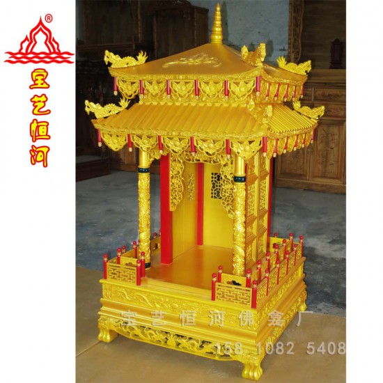 金色雙層屋檐神轎式佛龕方形屋頂仿古建神龕