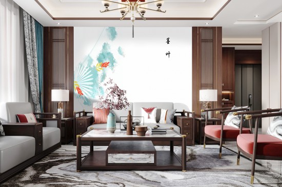 此系新中式客廳背景墻設(shè)計效果圖,包括:沙發(fā)背景墻和電視背景墻,更多裝修效果圖,請關(guān)注企業(yè)官網(wǎng):www.ykshu.cn