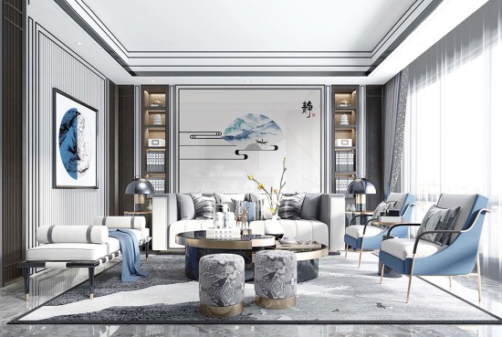 新中式客廳背景墻設(shè)計(jì)效果圖(下)