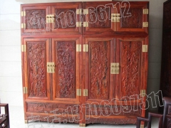 (3) 老撾大紅酸枝頂箱柜 雕百子圖