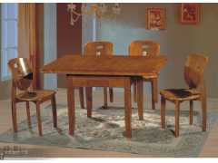 全實木餐桌,配備6把椅子,長:1.3米,寬:0.9米,高0.76米,可將中間那節(jié)臺面下降,變成0.9*0.9米的方桌,適合就餐人數(shù)經(jīng)常變動而又想加大空間的家庭。有柚木色、紅木色可供選擇。