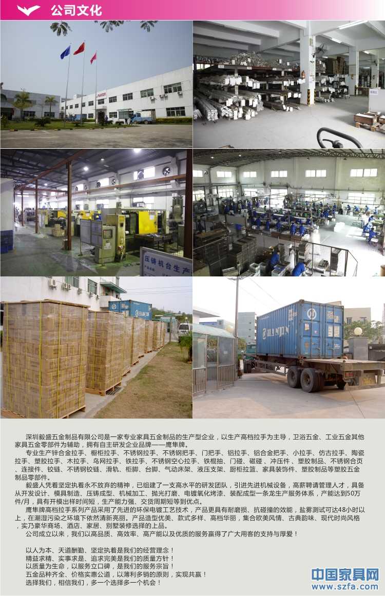 深圳毅盛五金制品有限公司是一家專業(yè)家具五金制品的生產(chǎn)型企業(yè),以生產(chǎn)高檔拉手為主導(dǎo),衛(wèi)浴五金、工業(yè)五金其他家具五金零部件為輔助,擁有自主研發(fā)企業(yè)品牌——鷹隼牌。