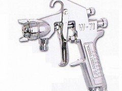 W-71-0 小型手動噴槍,涂料供給方式壓送式,涂料噴嘴口徑0.8mm,噴涂距離200mm,噴涂空氣壓力0.34(3.5)Mpa{kgf/cm2},空氣使用量240l/min,涂料噴出量200ml/min,噴幅190mm,所用空壓機1.5KW,重量450G.標準涂料容器:各種涂料加壓罐及隔膜涂料泵.涂料接頭為G1/4(PF1/4),空氣接頭為G1/4(PF1/4)