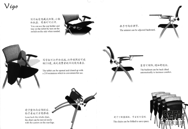 寫字板: 產(chǎn)品帶有可拆卸式的寫字板,以滿足不同客人的需要.寫字板的支撐連接部件材質(zhì)為鋁合金,表面處理為烤黑砂或精拋光。寫字板底板的材質(zhì)為PA+GF30%(尼龍加纖塑膠)料,寫字板面蓋材質(zhì)為ABS,表面烤防刮傷的橡膠漆; 寫字板可自由轉(zhuǎn)動(dòng),有隱藏式杯架,小物體托盤,需要時(shí)可隨時(shí)打開使用