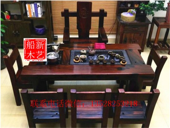 木搭配好制作出來的老船木家具、茶桌茶臺外形自然大氣,更有欣賞價值和收藏價值。