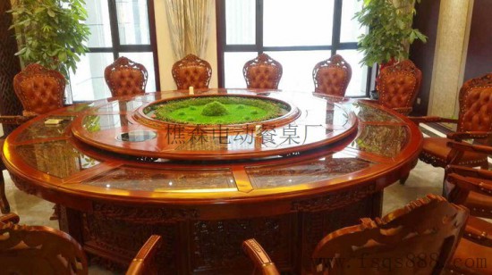 【功能介紹】:電動功能,即桌子的轉(zhuǎn)盤是在電動機的驅(qū)動下進行旋轉(zhuǎn),轉(zhuǎn)速可調(diào),方便用餐人員,夾取食物菜肴,遙控器控制或手動開關(guān)控制旋轉(zhuǎn);另可增設(shè)旋轉(zhuǎn)式電磁爐、電動音樂噴泉等功能。免費配有2個遠程遙控器,方便侍者服侍。中間放置山水噴泉景觀,水流在滾運石的旋轉(zhuǎn)下飛濺,池中可放置五彩石和金魚,另外可打開音樂功能,增加別樣用餐氛圍。