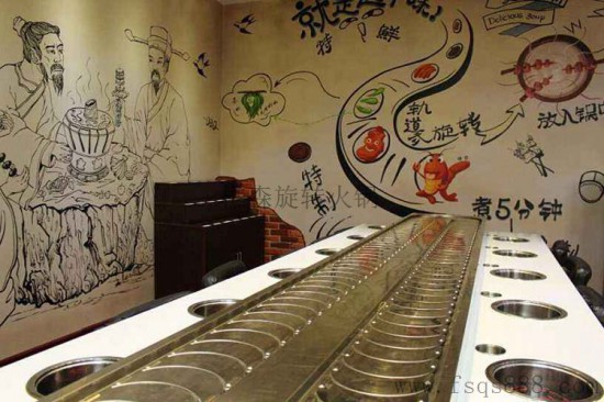 每側(cè)過道加上凳子的寬度不能低于1米。故房間的總寬度不能低于3.4米,所以,廣大客戶在找房子的時候,寬度非常重要,只要寬度不低于3.4米,長度根據(jù)自己找的房間長度來決定定做的回轉(zhuǎn)火鍋設(shè)備的長度。