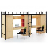 4、雙層底柜學(xué)生公寓宿舍床尺寸:2m×1m×1.7m。(常為兩人宿舍或四人宿舍,上為床鋪,下為書桌衣柜空間);