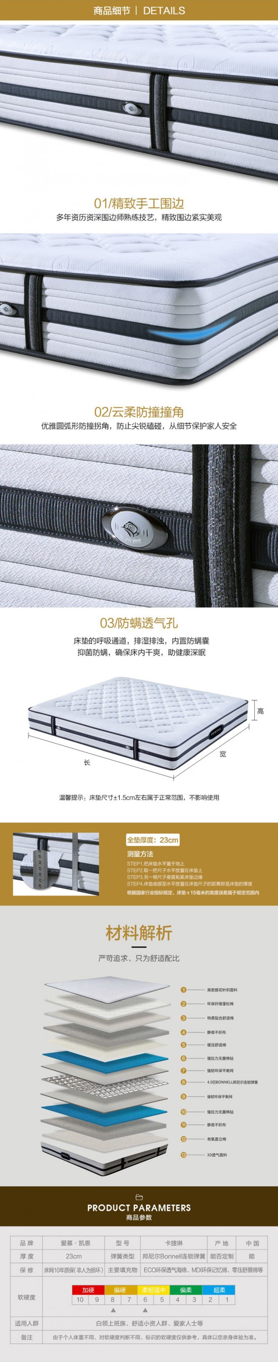 愛慕凱恩雙人席夢思3D透氣 冬夏兩用邦尼爾彈簧床墊