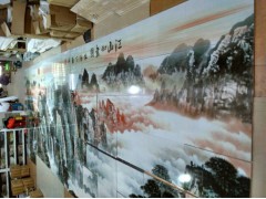 陶瓷壁畫是以磚、板等為板基,運用繪畫藝術(shù)與陶瓷工藝技術(shù)相結(jié)合,經(jīng)過放大、制板、刻畫、彩繪、配釉、施釉、燒成等一系列工序,通過多種施釉技巧和巧妙窯燒的火的藝術(shù)而生產(chǎn)出S形兼?zhèn)?、巧奪天工的陶瓷藝術(shù)作品。它不是原畫稿的簡單復(fù)制,而是藝術(shù)的再創(chuàng)造。