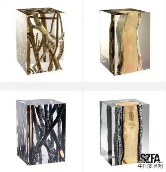 設(shè)計(jì)師從木與大自然中尋找他們?cè)O(shè)計(jì)與創(chuàng)作的靈感,以朽木作為主要材質(zhì),加入玻璃、樹(shù)脂等元素混合創(chuàng)作,結(jié)合工藝和工業(yè)設(shè)計(jì),創(chuàng)造了大自然氣息濃烈的家具。