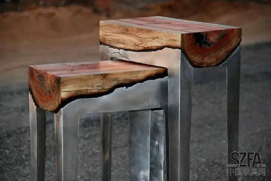 以色列天才藝術(shù)設(shè)計(jì)師Hilla Shamia創(chuàng)造出來(lái)的桌椅,每一張都是獨(dú)一無(wú)二的。通過(guò)獨(dú)特的加工技術(shù),將“高冷”的金屬和天然的原木結(jié)合,打造出讓人挪不開(kāi)視線的漂亮桌椅。