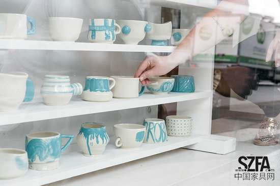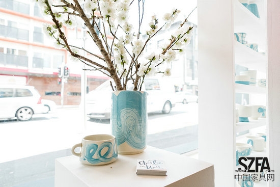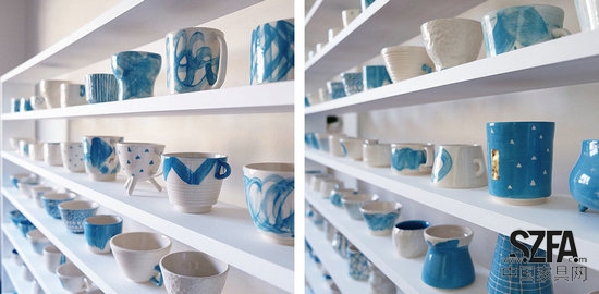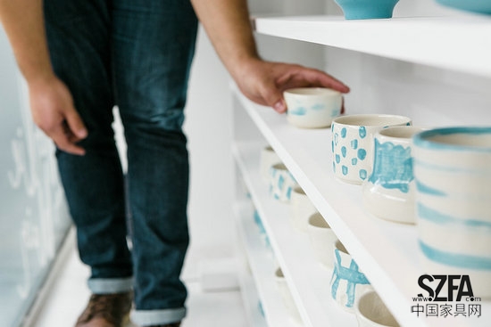 Studio Charlie and Blair的兩位創(chuàng)始人Charlie和Blair參加了一個(gè)名叫“100dayproject”的活動(dòng)。這個(gè)活動(dòng)不在于結(jié)果,而在于過(guò)程。他們要利用100天時(shí)間,每天挑戰(zhàn)做一只馬克杯。這些杯子均手工制成,形狀各異充滿探索性,同時(shí)色彩均為藍(lán)色和白色,圖案各異。最終他們完滿的完成這個(gè)挑戰(zhàn),在過(guò)程中,他們充分的與當(dāng)?shù)毓そ辰佑|,收獲頗多??稍诎拇罄麃喞ナ刻m州的毅力谷布朗斯維克街381號(hào)看到。