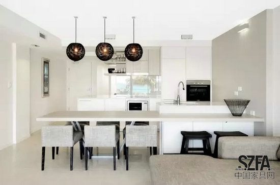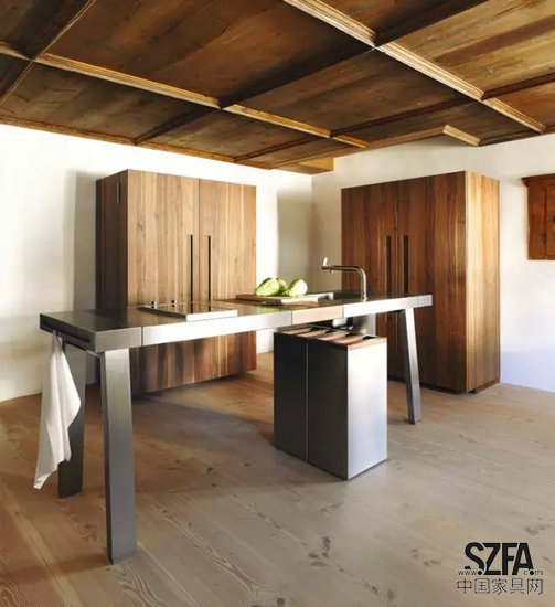 結構緊密整合的廚房設計,將工作組合臺、工具收納柜和廚房電器巧妙結合在一起,能創(chuàng)造一個真正親切沒有距離感的廚房天地。