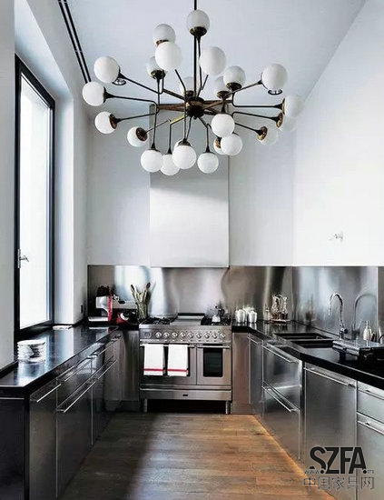 廚房風格的定位在現(xiàn)代設計和古典風格之間 達到了巧妙的平衡。