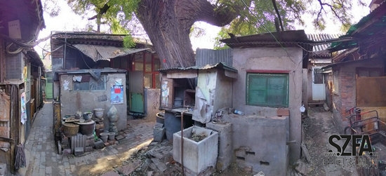 茶兒胡同(茶葉胡同)是嘈雜大柵欄地區(qū)中一個安靜的地方,距離在市中心的天安門廣場一公里, 茶兒胡同8號是典型的“大雜院”(大雜亂,庭院),曾有超過十幾戶人家在此居住。在過去的五十年里每個家庭在院子里建造了屬于自己的附加小廚房。這些特殊密度形成的附加結(jié)構(gòu)通常被視為城市的廢料,在過去幾年的整治措施中,這些構(gòu)造幾乎都被自動消滅了。