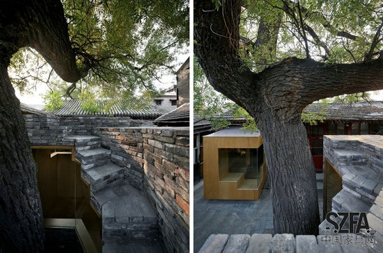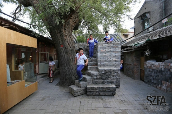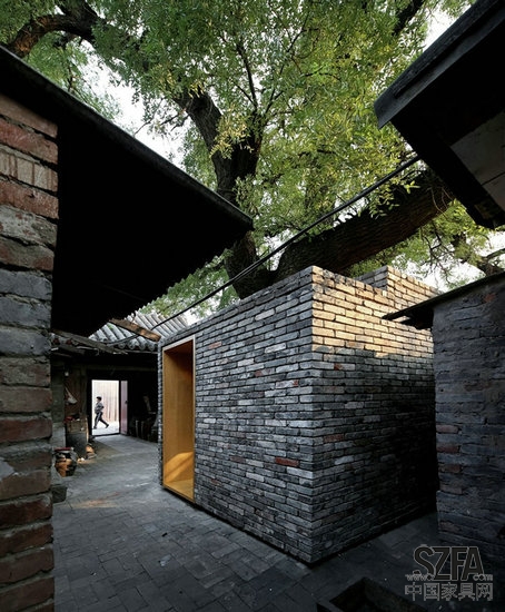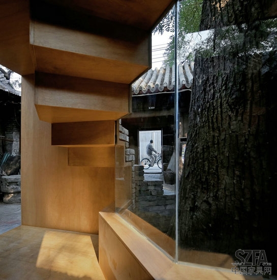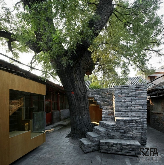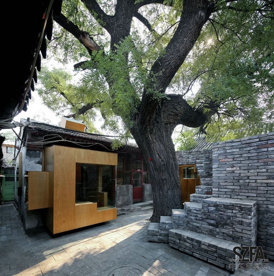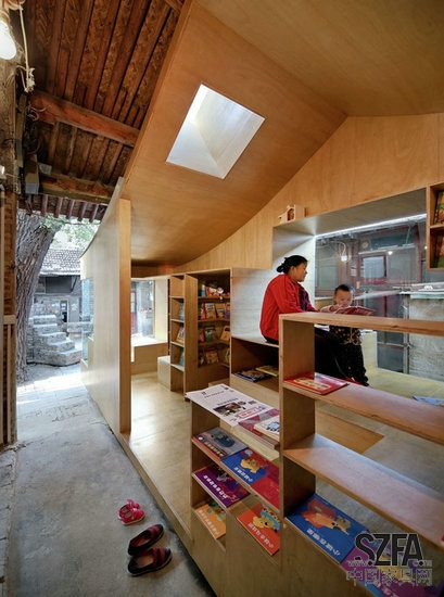 憑借在Cha'er胡同四合院小規(guī)模的干預(yù),建筑師嘗試加強(qiáng)社區(qū)之間的聯(lián)系,以此來豐富當(dāng)?shù)鼐用竦暮?。一個孩子可能會在放學(xué)后在他們的父母來接他們之前在這里停留,挑選出最喜歡的書,在迷你的空間里面閱讀?;蛘?,孩子可能爬到樓頂或坐在樹蔭下,與在熟悉的,但新的空間里生活的中老年人享受一個舒適的談話。