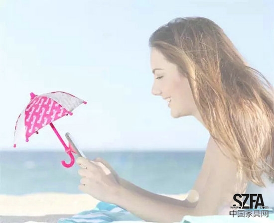 小巧可愛的模樣,就像芭比娃娃的配件一樣,但其實卻是手機(jī)專用的晴雨兩用小傘,傘柄處還貼心的附了吸盤,黏在手機(jī)背后,不用特定騰出手,就能幫手機(jī)在大雨中,減少被從天而降的雨珠打濕的機(jī)率。