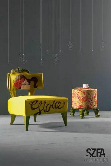 這個(gè)新的系列家具是室內(nèi)設(shè)計(jì)、戲劇和視覺情緒的產(chǎn)物,表現(xiàn)了各種象征現(xiàn)代生活的品位和文化。不同尋常的形狀,顏色的鮮明對(duì)比,材料的大膽組合被高超的手工藝技術(shù)結(jié)合在一起,創(chuàng)造出一種千變?nèi)f化的風(fēng)格和氛圍,用創(chuàng)造力和諷刺意味重新塑造空間,不僅提供了重新審視過去的家具,還有當(dāng)代設(shè)計(jì)作品。給予了無限的幻想。