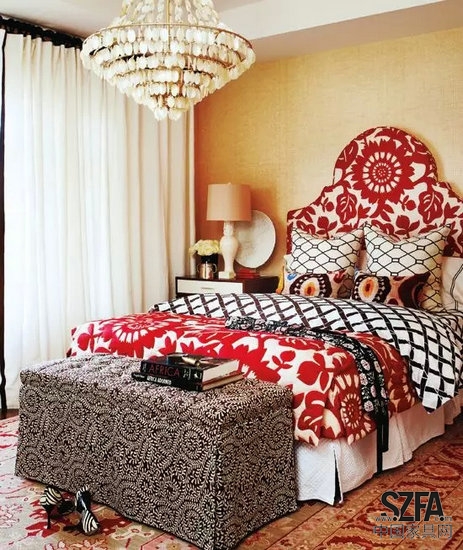 讓家具變的趣味、輕松、詼諧是中國紅設(shè)計(jì)的一個(gè)重點(diǎn)考量重點(diǎn)。融入到臥室里的這款老式家具整體造形充滿了對(duì)中國傳統(tǒng)民族文化的現(xiàn)代解讀,選用中國紅給予臥室更多的想象空間。