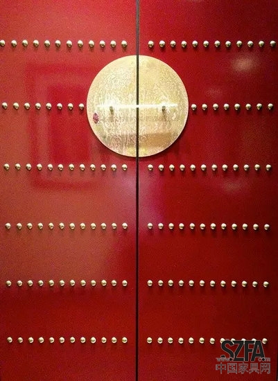 介乎紅色和橙色之間,是一種不透明的朱砂制成的顏色,因?yàn)閷m殿裝修的主色調(diào)使用的是金黃色和朱紅色,因此朱紅色表示高貴與權(quán)威,朱紅色的大門象征著莊重。