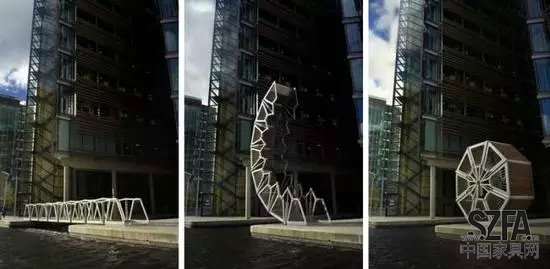 來自英國倫敦的這座折疊滾橋讓我想起了小時候玩的一種玩具,現(xiàn)在已經(jīng)記不清名字,據(jù)說這座橋是由八個小模塊組成的,在每周五中午12點會準(zhǔn)時打開,不用的時候可以折疊成一個八角球形(最右圖),方便移動搬運。真真是方便至極、灰常靈巧的一座小橋啊~