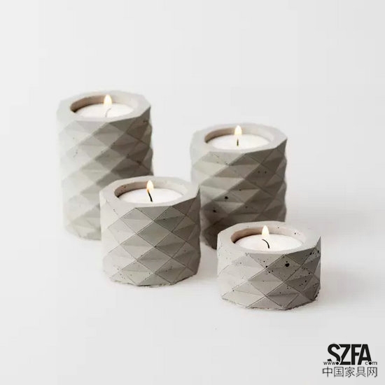 由混凝土凝鑄而成的燭臺(tái)。幾何重復(fù)的形態(tài)十分適合混凝土的質(zhì)感。它們不僅十分環(huán)保,而且保質(zhì)期最為持久。