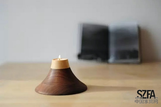 巧妙地利用黑胡桃和楓木的獨(dú)具特色的木本色,拼接出積雪覆蓋的火山的抽象形象。點(diǎn)亮蠟燭、上緊音樂(lè)盒發(fā)條,燭光伴著天空之城的旋律,將你帶入美麗的夢(mèng)幻世界。