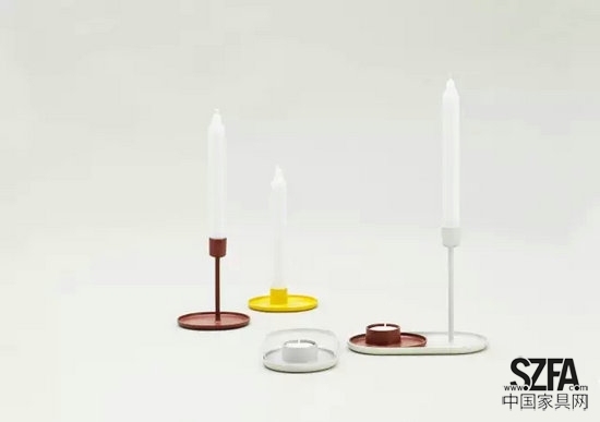 這一系列燭臺(tái),每一個(gè)都帶有一個(gè)托盤(pán),可以牢牢地貼服在桌面上。小托盤(pán)蠟燭還可以放入大托盤(pán)蠟燭的托盤(pán)中,形成一個(gè)新的組合,并且可以自由搭配多彩的顏色,設(shè)計(jì)出屬于每個(gè)人的個(gè)性燭臺(tái)。