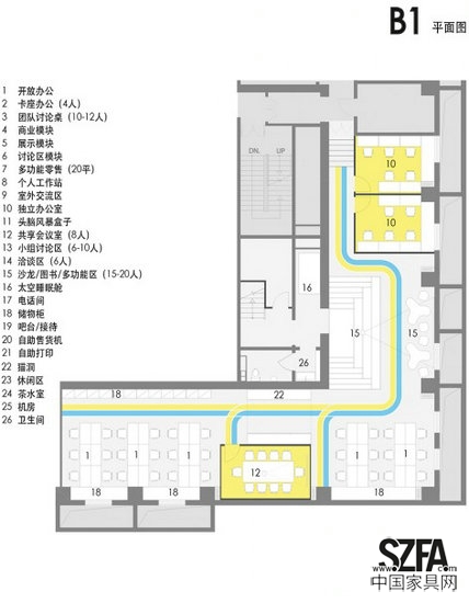北京遠(yuǎn)洋新干線We+聯(lián)合辦公空間建筑面積約800平方米,分為首層、二層和地下層。建筑師在項目初期,采用研究導(dǎo)入設(shè)計的方式,通過大量調(diào)研和案例分析,從該聯(lián)合辦公空間的類型、模式需求方面與業(yè)主進(jìn)行探討,從而得出了一個靈活多變的共享空間模式。