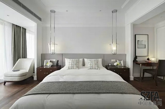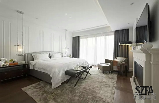 主要墻面,如床頭背景用傳統(tǒng)的白色線(xiàn)框護(hù)墻板,木作施工時(shí)全部選用優(yōu)質(zhì)環(huán)保板材及油漆。