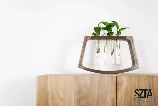 該花器搭配4支試管使用,可用于培養(yǎng)各種水養(yǎng)植物。通過試管內(nèi)植物不同的生長速度所造成的不平衡感,直接的感受時間與生命。