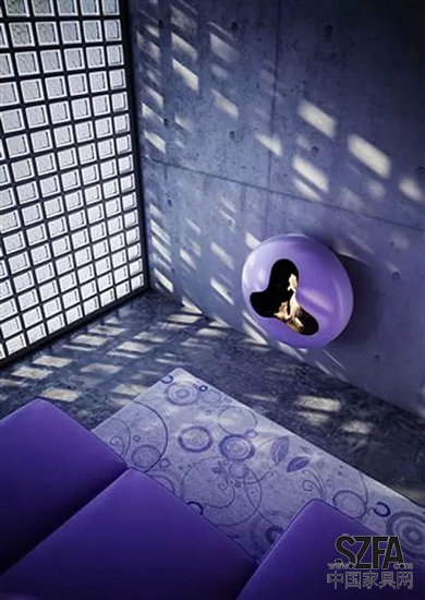 創(chuàng)意的地方在于圓形的地毯中央設(shè)置了一個(gè)火爐。隨著科技的發(fā)展,筆記本、手機(jī)等產(chǎn)品讓人們住在同一個(gè)屋檐下,也各自有自己的娛樂世界。而Stephanie Langard認(rèn)為火可以將家人朋友匯聚在一起,更多地陪伴彼此。