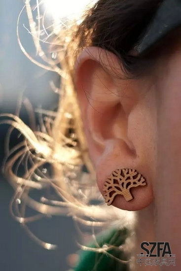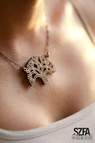 將竹子細膩打磨成獨特樹形的首飾,美好而脫俗。