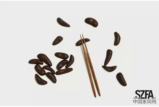創(chuàng)作靈感來自于山間小溪的懷念。山舍匠人精心精選密度堅硬的風(fēng)車木,風(fēng)車木的顏色烏黑,看起來就像墨染過一樣,所以這系列作品取名為“墨石”。