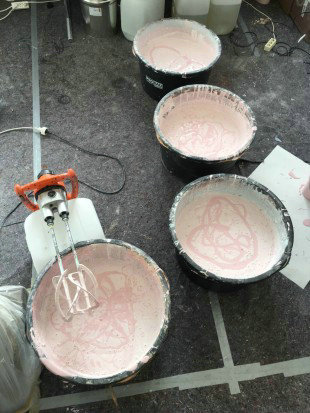 前衛(wèi)藝術(shù)家Peter Zimmermann在自己家鄉(xiāng)的博物館舉行了個人大展,天馬行空討厭束縛的他這次將整個展覽空間的地板也變成了自己的作品。人們走在層層透明鮮亮的環(huán)氧樹脂上,就像踏上了繽紛的海浪,或者是海市蜃樓般的仙境琉璃磚。展示效果相當(dāng)驚艷。同時整個地面效果也和墻上掛著的同樣由藝術(shù)家創(chuàng)作的畫兒十分相稱。