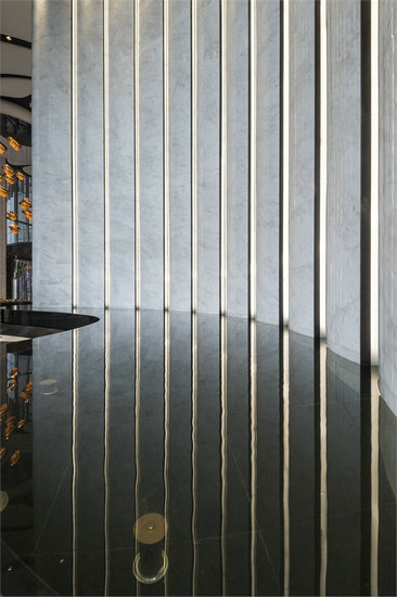 米白與深色石材作配搭,一方面配合自然亦帶來視覺上的強(qiáng)烈反差對比,同時(shí)整個(gè)空間著墨于「弧線」上,配合光線令空間布局主次分明。