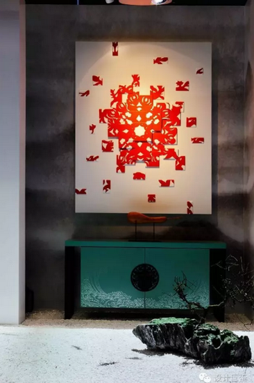 殷艷明的家具作品《案·青之色》,是以青釉色的油漆打板做柜面,再印上海浪紋的圖案,畫面呈現(xiàn)一片從青綠中躍出水面的鯉魚,暗寓“鯉魚躍龍門”。不論是家具產(chǎn)品,還是空間設(shè)計,殷艷明的作品處處都能體現(xiàn)中國的傳統(tǒng)文化,將中國的東方元素與設(shè)計完美結(jié)合,是他不斷追求的創(chuàng)新之處。