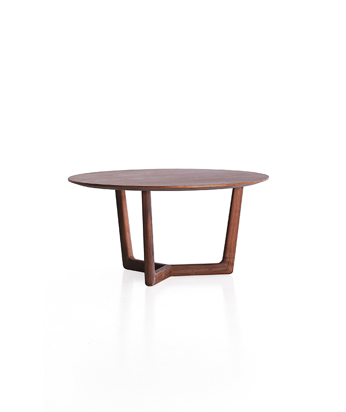 協(xié)調(diào)的線條和傾斜的椅背讓這款Jade休閑椅非常具有個性特點。結(jié)構(gòu)采用水曲柳或胡桃木結(jié)合黃銅配件,共有四個支撐點。皮革椅背和座位是一個完整的整體,曲面的設(shè)計完美切合人體工學(xué)。配套的Shahan桌子采用同樣的木材及色彩,基座與椅子一樣是十字交叉的支撐結(jié)構(gòu),配上圓形的桌面。這一套組合適用于休閑空間。
