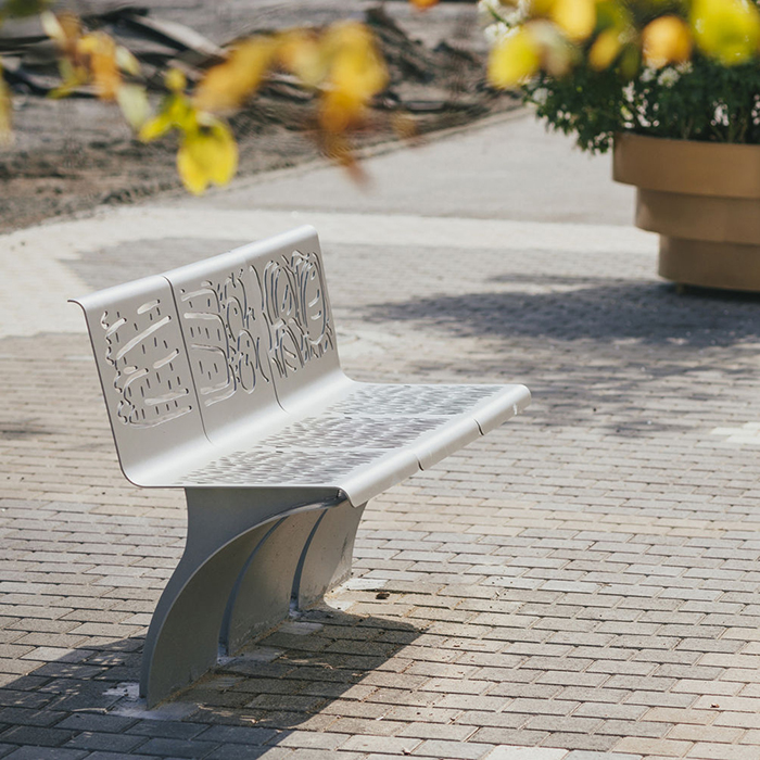結(jié)合了藝術(shù)的氣息,設(shè)計(jì)的存在也就超越了時(shí)間的限制。以鋼材為主的戶外座椅,亮點(diǎn)在于靠背上的藝術(shù)創(chuàng)作,設(shè)計(jì)師Jonas Hakaniemi特意聘請芬蘭當(dāng)?shù)氐乃囆g(shù)家為這一系列座椅增添藝術(shù)氛圍,靠背上的圖畫因所在環(huán)境的轉(zhuǎn)變而不同,或花鳥、或魚蟲、或湖泊……