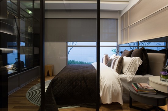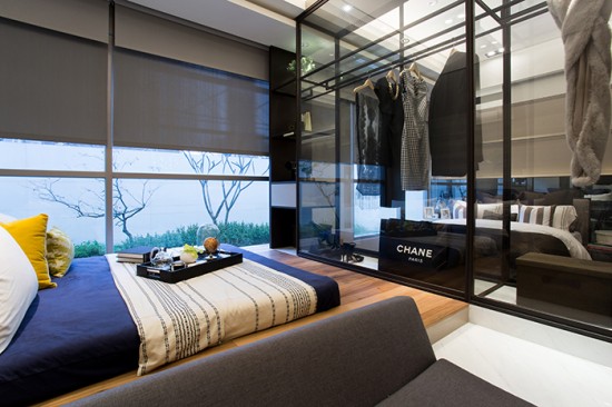 靠墻的衣柜背墻具有穿透性的強(qiáng)化玻璃,隔而不分兩個(gè)空間,房間頓時(shí)放大且明亮;而在需要隱私的時(shí)候,再利用可以隔絕視覺的卷簾或百頁來分隔,空間的利用性就可以大大的增加,而衣柜本身的深度和前后面板雙層強(qiáng)化玻璃的隔音,在實(shí)用性上達(dá)到加成效果,這就是設(shè)計(jì)師在每一個(gè)空間交界中想要探討的議題模式:是不是能讓每個(gè)平面的交界墻面,都能夠達(dá)到最高利用率。