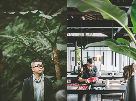 朱永安老師,早期以禪風(fēng)花藝在亞洲杯獲得冠軍,近幾年來,他在歐洲、亞洲的表演教學(xué),均以沉穩(wěn)內(nèi)斂、東方造型花藝深獲肯定。