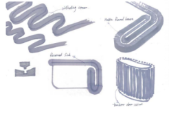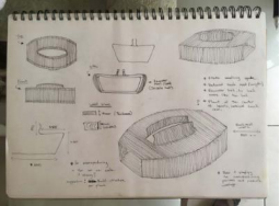隔離期間人們往往無法進(jìn)行的傳統(tǒng)儀式,改成在家里操辦?;谶@樣的特別需求,就要有一件既能適應(yīng)狹小空間,又能起到同樣效果的家具擺件。Doris想要創(chuàng)造一款“曲水流觴”習(xí)俗的替代品。這是一種中國古代民間的飲茶習(xí)俗:人們坐在河道兩邊,一個(gè)杯子沿著溪流漂浮。杯子停在誰的面前,誰就要喝下這杯茶。Doris設(shè)計(jì)了一張緊湊的茶桌來實(shí)現(xiàn)這個(gè)功能,她的靈感來自于客家的圓形房屋,受這個(gè)建筑的啟發(fā),她設(shè)計(jì)了一個(gè)彎曲的桌子,其儲物空間隱藏在桌腿中,中央有一條縫隙可放置托盤和杯子。