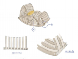 Mazibuko作品的靈感來自于Isicolo,一款代表多個(gè)非洲部落文化的發(fā)型,以及Indlamu,一種祖魯部落在慶祝儀式上跳的舞蹈。他將這些視覺參照物與互動主題、人類行為以及在人們生活中的設(shè)計(jì)角色結(jié)合起來。他說:“與他人打交道是人類的內(nèi)在特質(zhì)。”他將此作為自己設(shè)計(jì)的理由,為公共空間設(shè)計(jì)了一個(gè)模塊化、分層的座椅。他采用一種實(shí)用的方法,強(qiáng)調(diào)以人體工程學(xué)和功能性來創(chuàng)造由互鎖的木條制成的長凳。