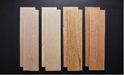從左至右依次是:美國軟楓木,硬楓木,紅橡木和櫻桃木