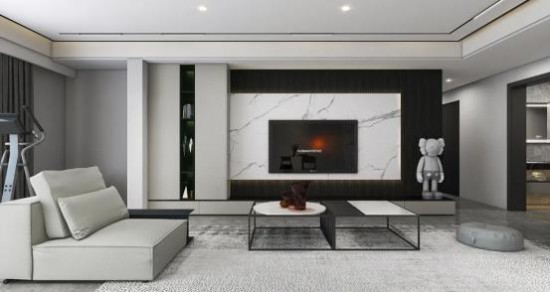 定制大理石電視背景墻紋理自然,黑白設(shè)色極簡(jiǎn)純粹,一展大宅風(fēng)雅。寬闊的生活動(dòng)線大氣從容,CBD家居·黑金 | HZ221、HZ222茶幾,幾何構(gòu)型呈現(xiàn)簡(jiǎn)約之美,精巧輕盈,增強(qiáng)空間通透感。