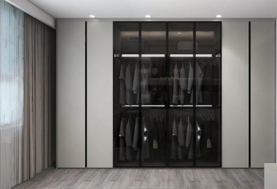 定制衣柜內(nèi)設(shè)線燈,明暗交織的設(shè)計(jì)手法增強(qiáng)氛圍感,合理分區(qū)收納儲(chǔ)物,實(shí)用大方,無(wú)形中增強(qiáng)生活儀式感。