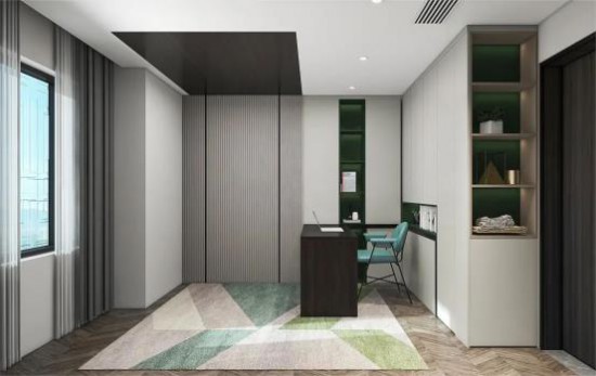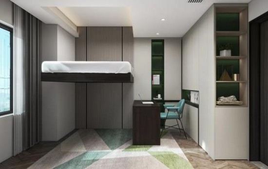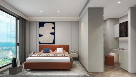 科技賦能,臥室的睡眠區(qū)、學(xué)習(xí)區(qū)采用動(dòng)態(tài)陳設(shè),將空間極致利用。智能升降床、功能書(shū)桌,便捷輕巧,改變空間格局,定制入墻柜,擴(kuò)大收納,生活空間更顯整潔美觀。
