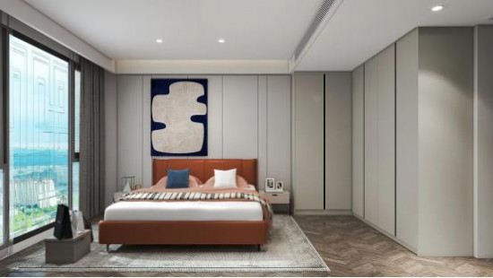 大片落地窗引光入室,帶來(lái)更通透明朗的視覺(jué)觀感,定制墻柜收納有序,將美感與實(shí)用性相結(jié)合,賦予空間張力。