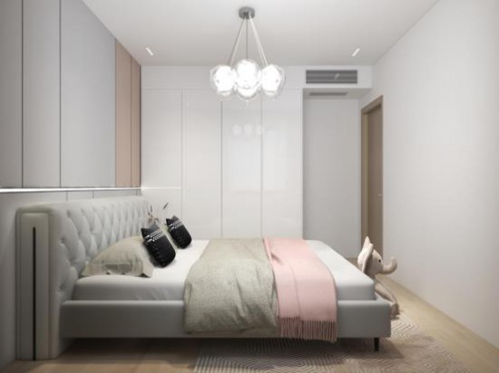 在原有的空間布局上,以簡(jiǎn)凈的設(shè)計(jì)手法重塑意境,清淺的色彩組合傳達(dá)出沉靜溫柔的空間情緒。